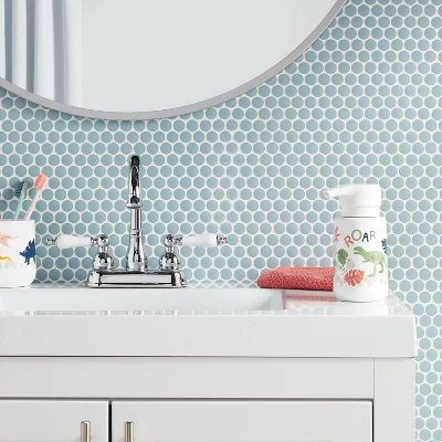 Bring a cute update to your family’s bathroom decor with this Dinosaur Soap Pump Dispenser from Pillowfort™. Made from BPA-free plastic and designed in a cylindrical bottle silhouette, this soap dispenser features an easy-to-use pump dispenser that allows them to get the right amount of soap onto their palms. Adorned with dinosaur silhouettes, colorful leaves and “ROAR” message on a white background, it’s sure to add fun flair to any bath space.